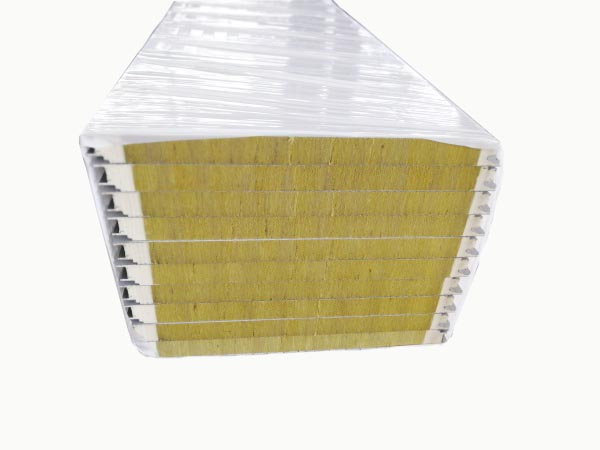 巖棉橫裝夾芯板,外觀漂亮,防水,安裝方便。其中有純巖棉橫裝夾芯板和聚氨酯封邊的巖棉夾芯板。采用聚氨酯封邊亦或是純巖棉夾芯板是根據項目的實際需求而定,聚氨酯封邊巖棉夾芯板在成本上要比純巖棉夾芯板略高。企口連接處的封邊采用發泡的聚氨酯,增強了板子的強度,使得板子更平整,另外也起到了防水的作用。